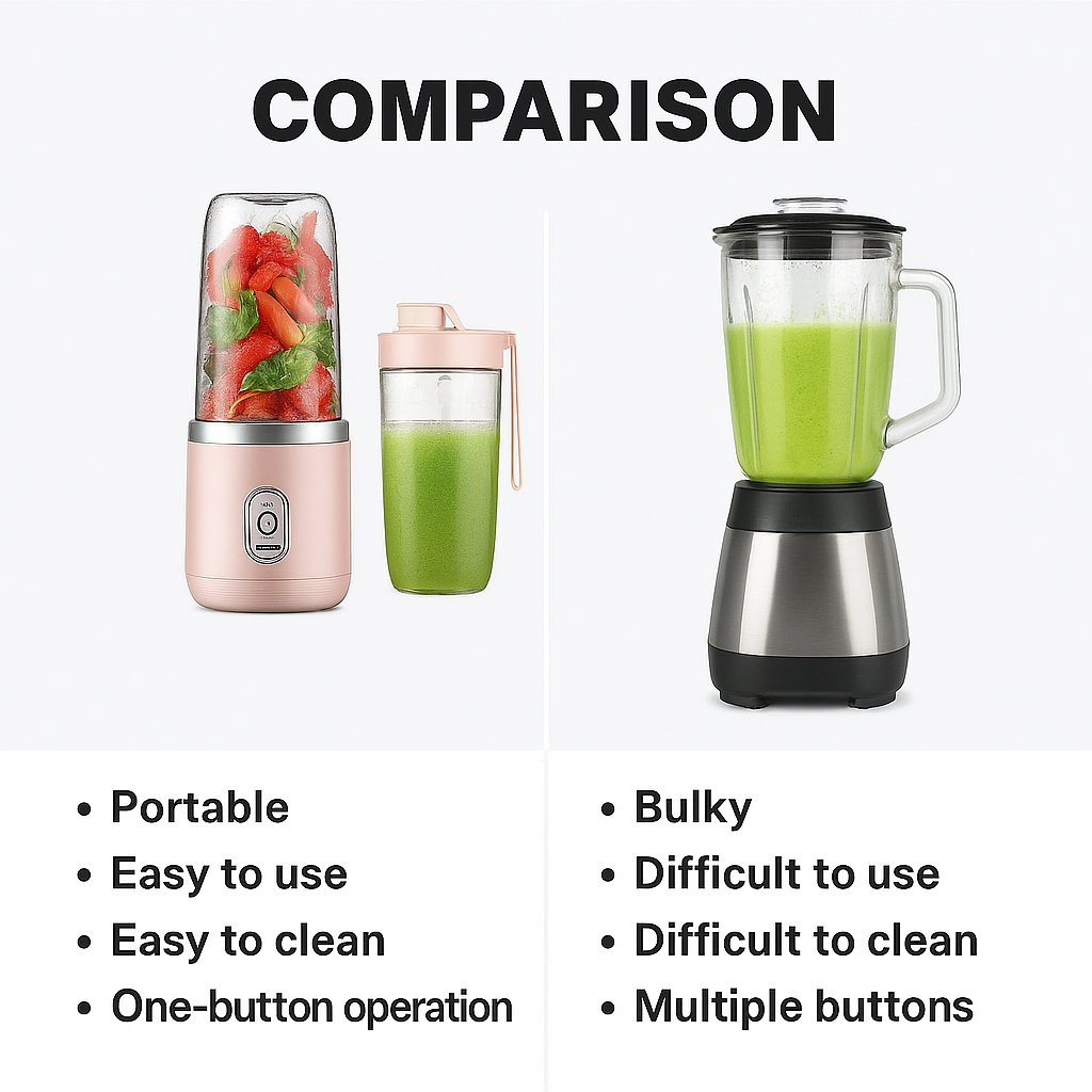 We all want to stay healthy, but making fresh smoothies or shakes on the go isn’t always easy. Big, bulky blenders take up counter space, and pre-packaged drinks are expensive and often loaded with sugar. That leaves most people skipping their healthy drinks altogether or settling for quick fixes that don’t last. It can be frustrating when you’re busy, rushing out the door, or traveling, and you don’t have a simple way to enjoy something fresh and nutritious. We get it — staying consistent with healthy habits shouldn’t feel like such a hassle. That’s why there’s a real need for a portable, easy-to-use solution that actually fits into your lifestyle.